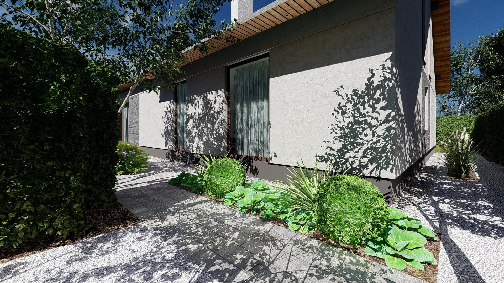 - Przedstawione zdjęcia są wizualizacją komputerową i w zależności od zakupionych roślin, sposobu wykonania prac i zastosowanych materiałów mogą różnić się w rzeczywistości.